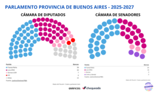 Provincia de Buenos Aires. El Parlamento bonaerense cambia luego de las elecciones legislativas de 2025. Se renovó la mitad de la cámara y fueron 5 las listas que lograron lugares en la cámara que eligió a Alejandro Dichiara para presidirla