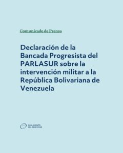 La Bancada Progresista del Parlamento del MERCOSUR expresa su más enérgico repudio a la intervención militar llevada a cabo por los Estados Unidos de América contra la República Bolivariana de Venezuela, hecho que constituye una gravísima violación del Derecho Internacional Público, tipificada